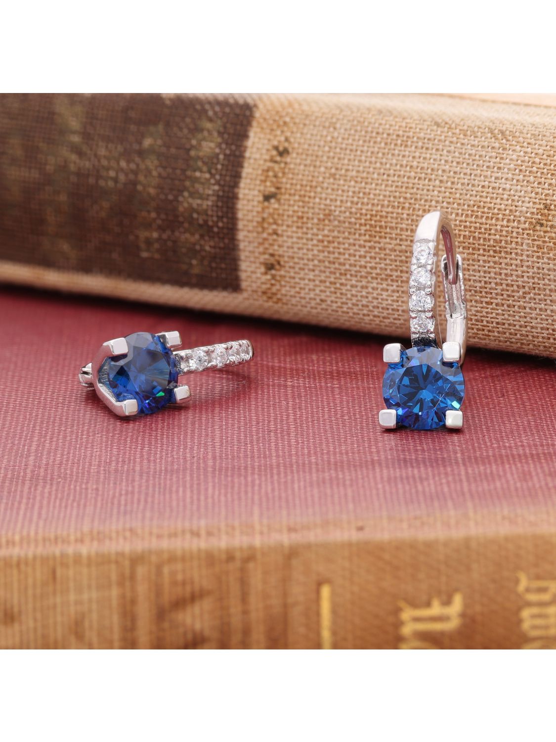 • Acalee AC1006-05 Women's Hoop Earrings 925 Silver Dark Blue Cubic Zirconia Packaging