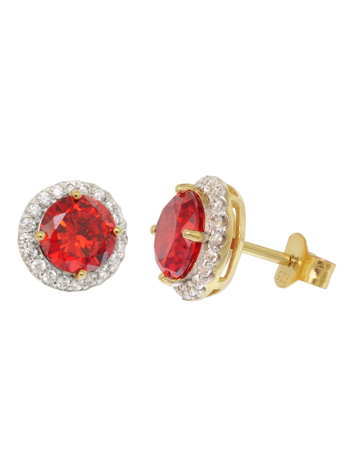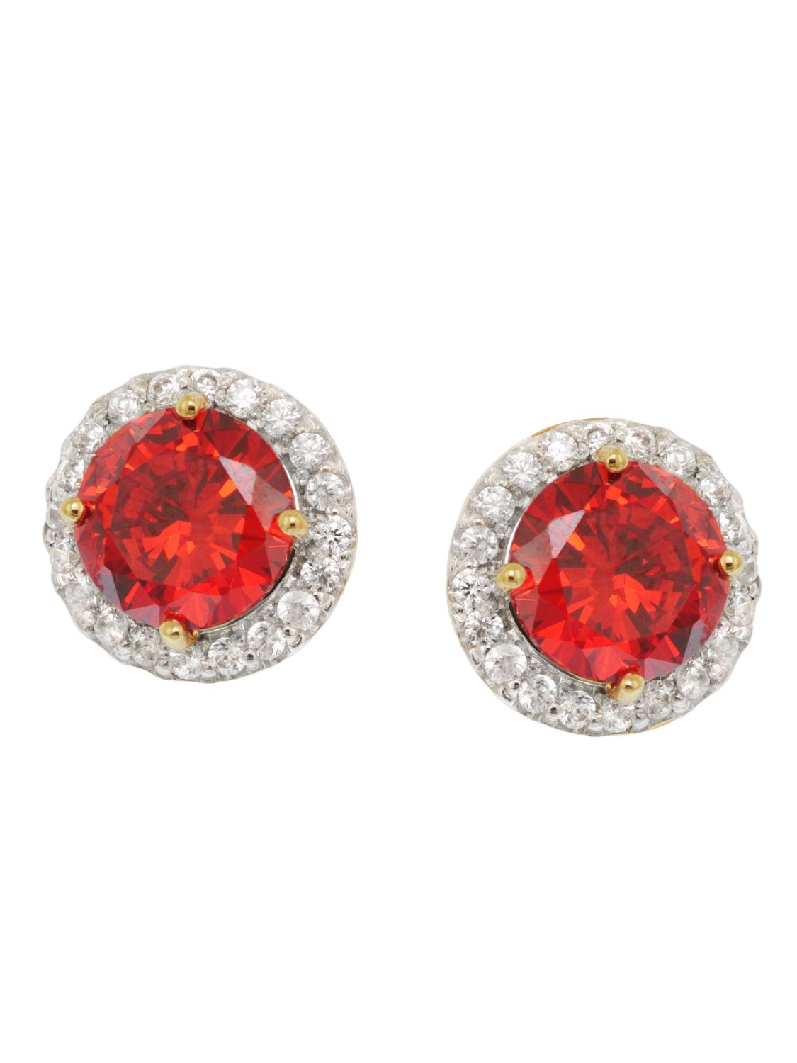 • round cubic zirconia in bright, warm garnet red, set with 4 prongs