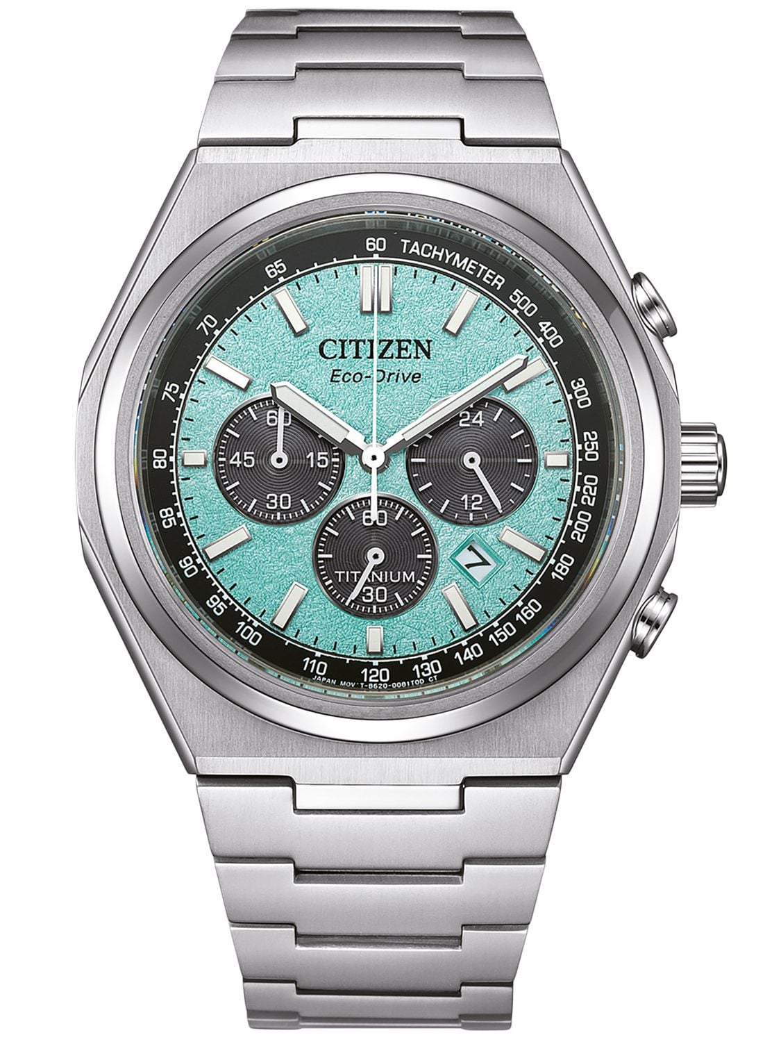 Citizen CA4610-85M Eco-Drive Men´s Wristwatch Chronograph Titanium Turquoise 4974374341686