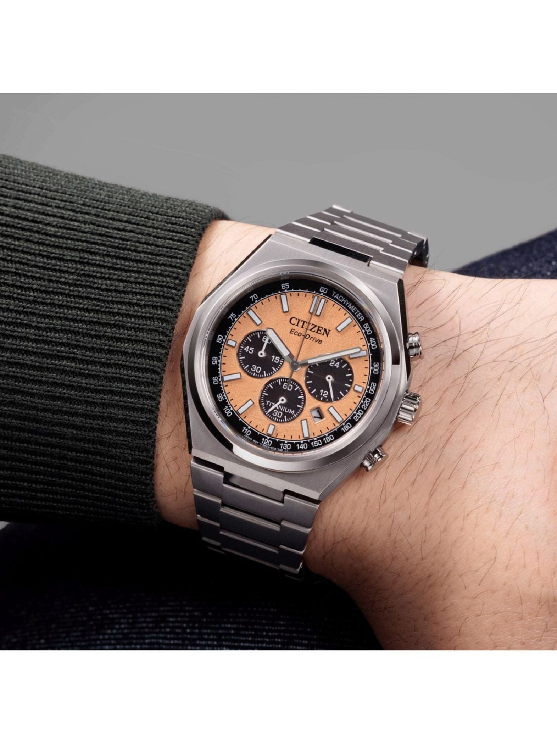 Citizen CA4610-85Z Eco-Drive Men´s Wristwatch Chronograph Titanium Peach Tone 4974374341679