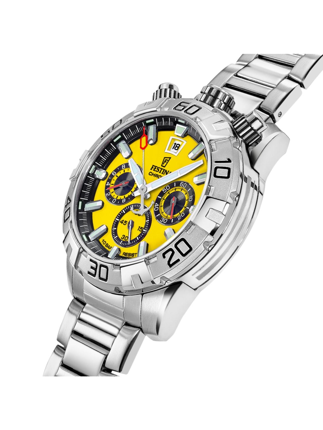 • Festina F20743/4 Men's Watch Bullhead Yellow with Steel Bracelet Packaging