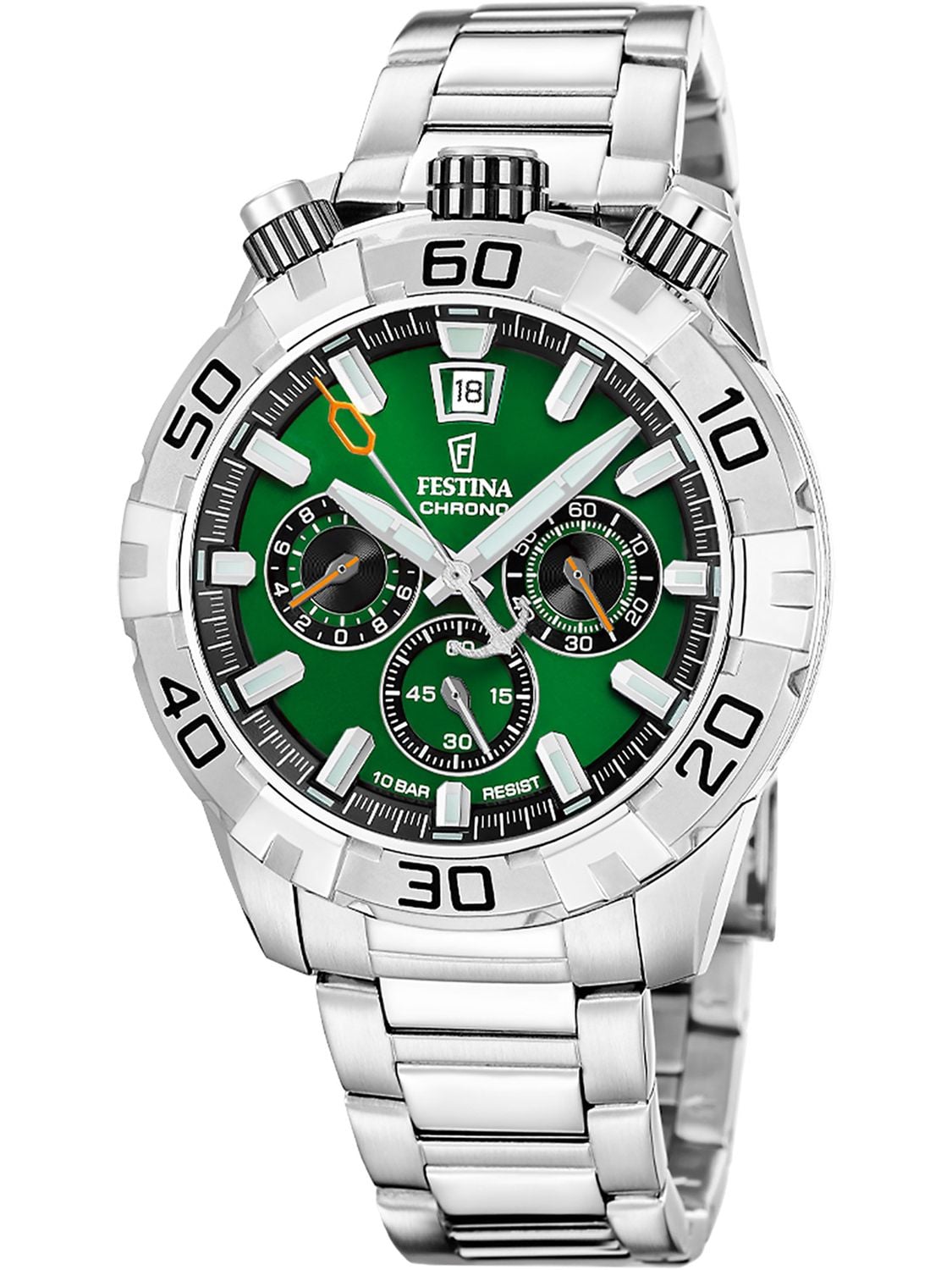 • Festina F20743/2 Men's Watch Bullhead Green with Steel Bracelet Packaging