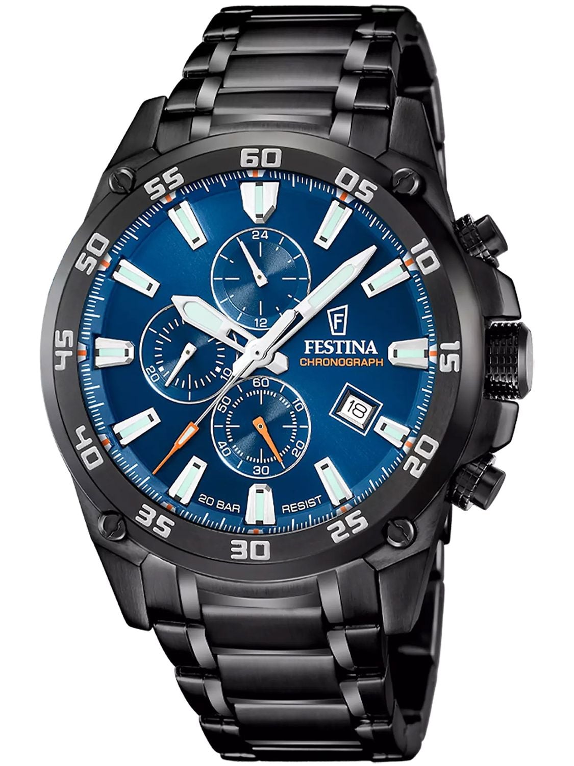 Festina Men's Watch Chronograph Black/Blue 20 bar
