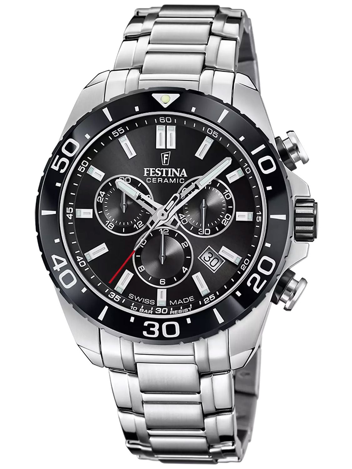 • Festina F20042/4 Men's Watch Chronograph Steel/Black with Sapphire Crystal Packaging