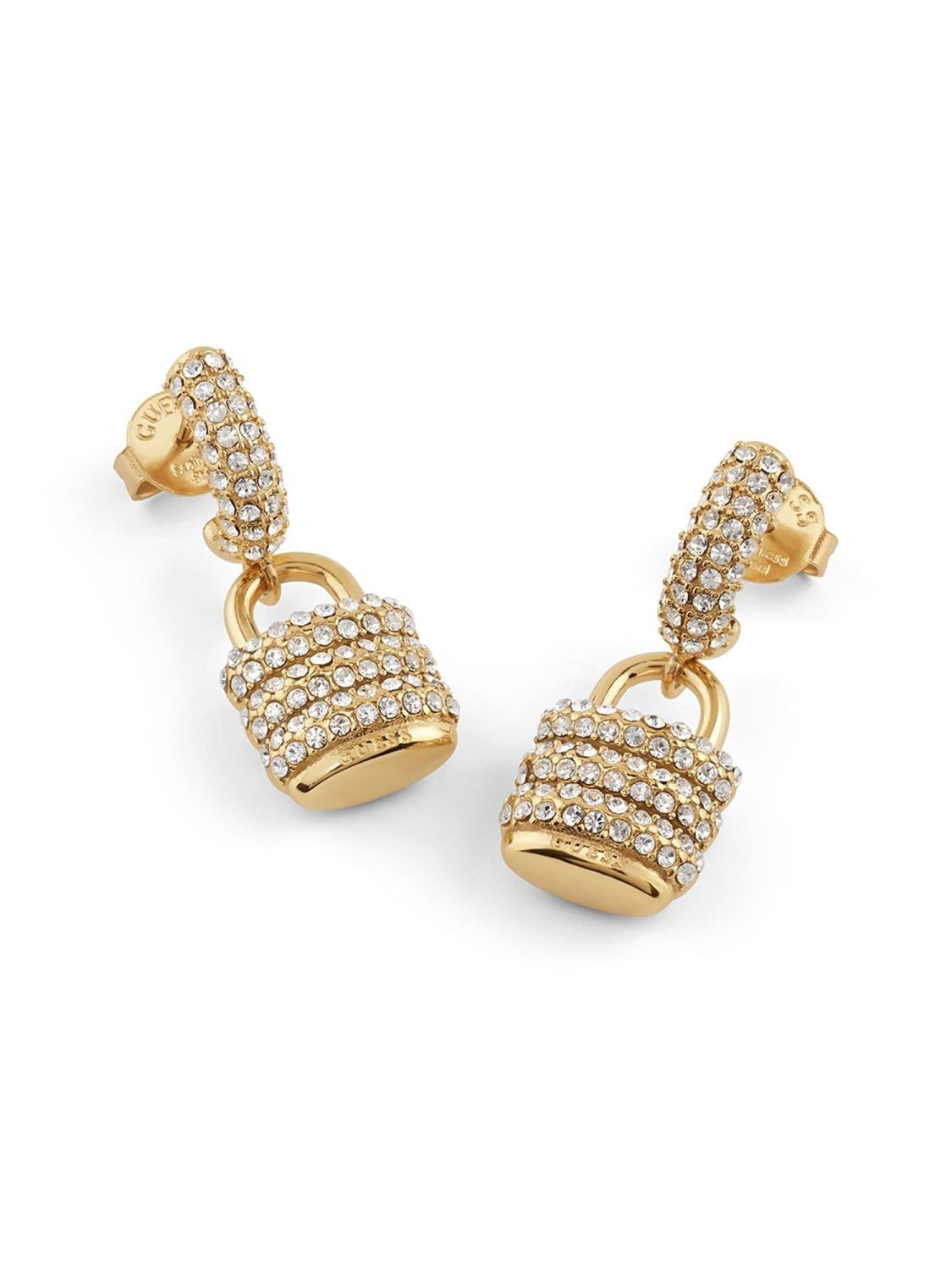 • Guess JUBE05407JWYGT/U Women's Dangle Earrings Pave Padlock Gold Tone Packaging