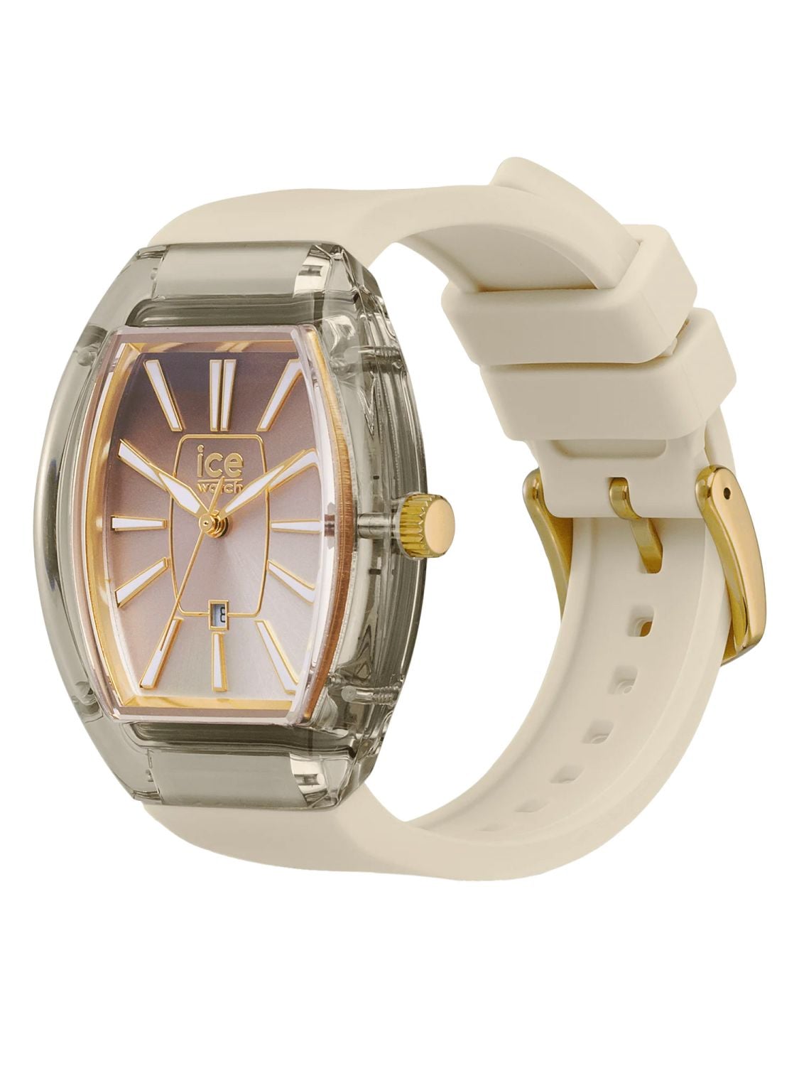 • beige silicone strap with pin buckle