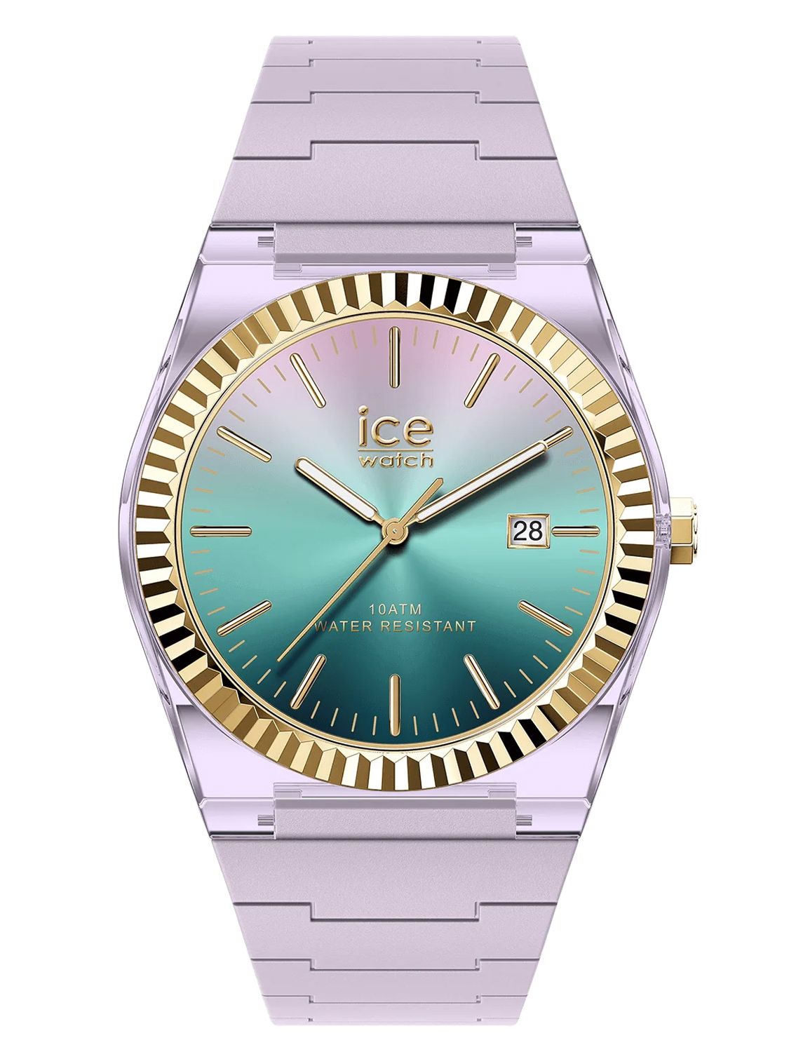 • sunray dial with a fine colour gradient in turquoise and rose