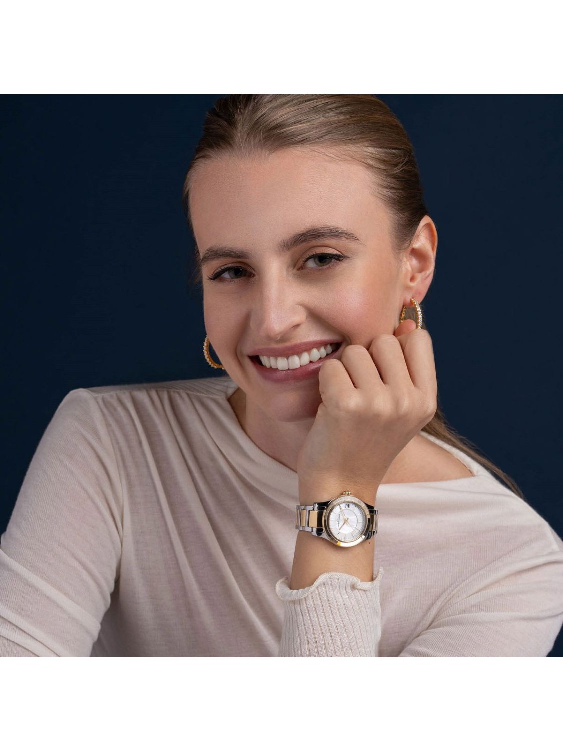 • beige mother-of-pearl dial