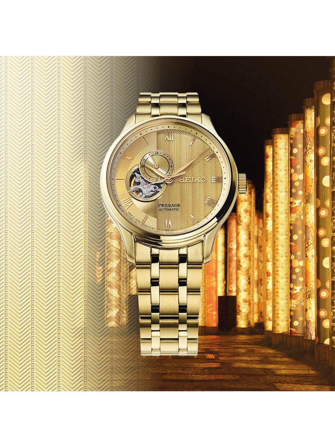 Seiko SSA468J1 Presage Automatic Watch Japanese Garden Gold Tone