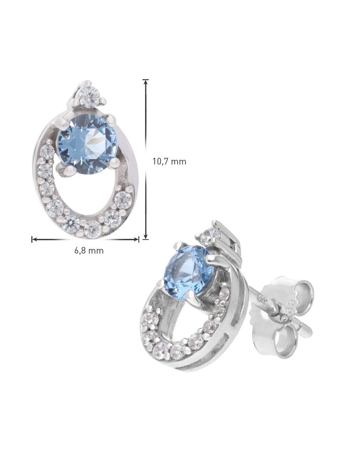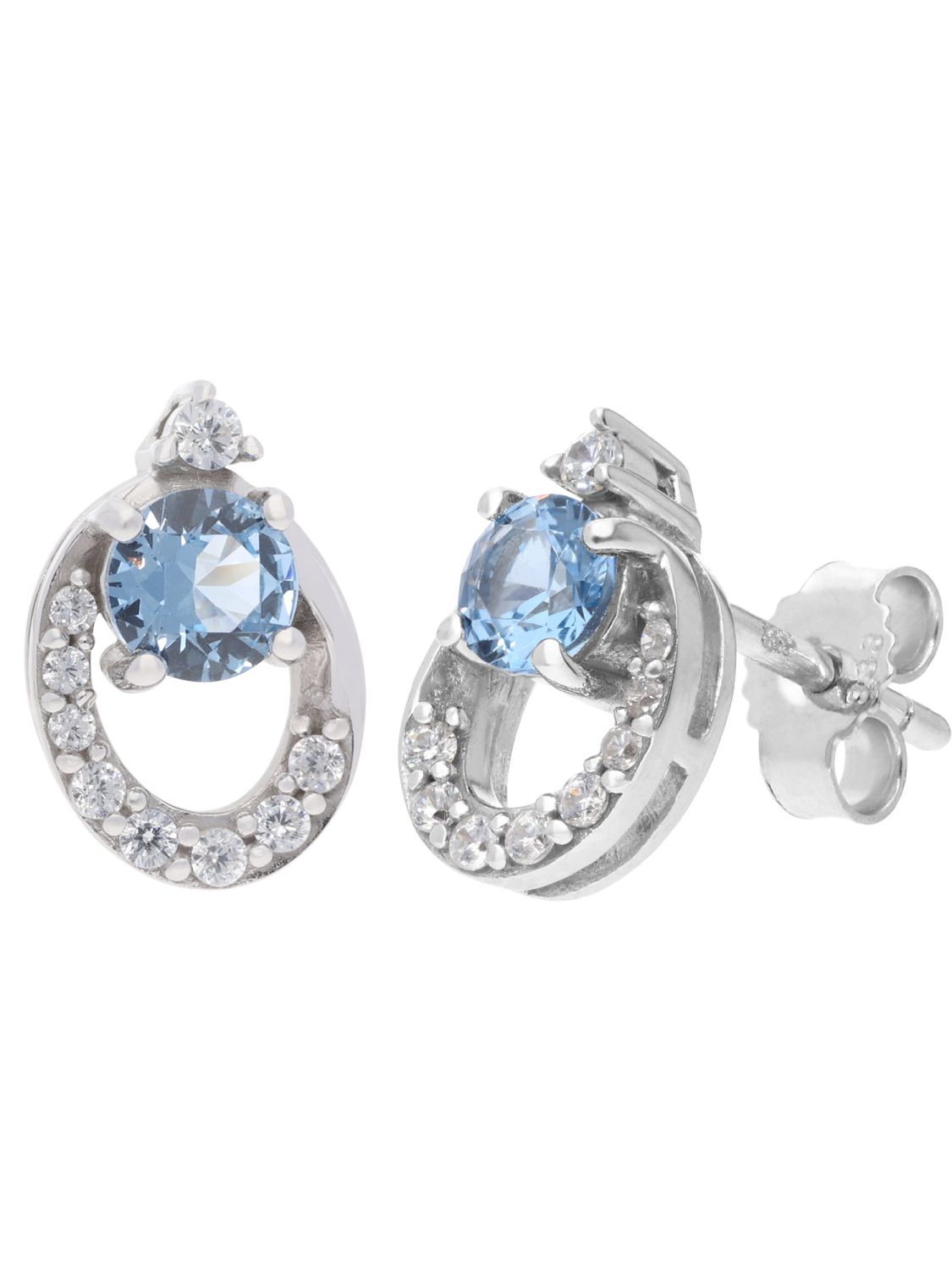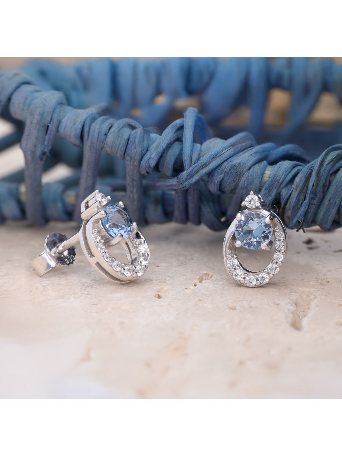 trendor Women's Stud Earrings White Gold 333 With Synthetic Aquamarine