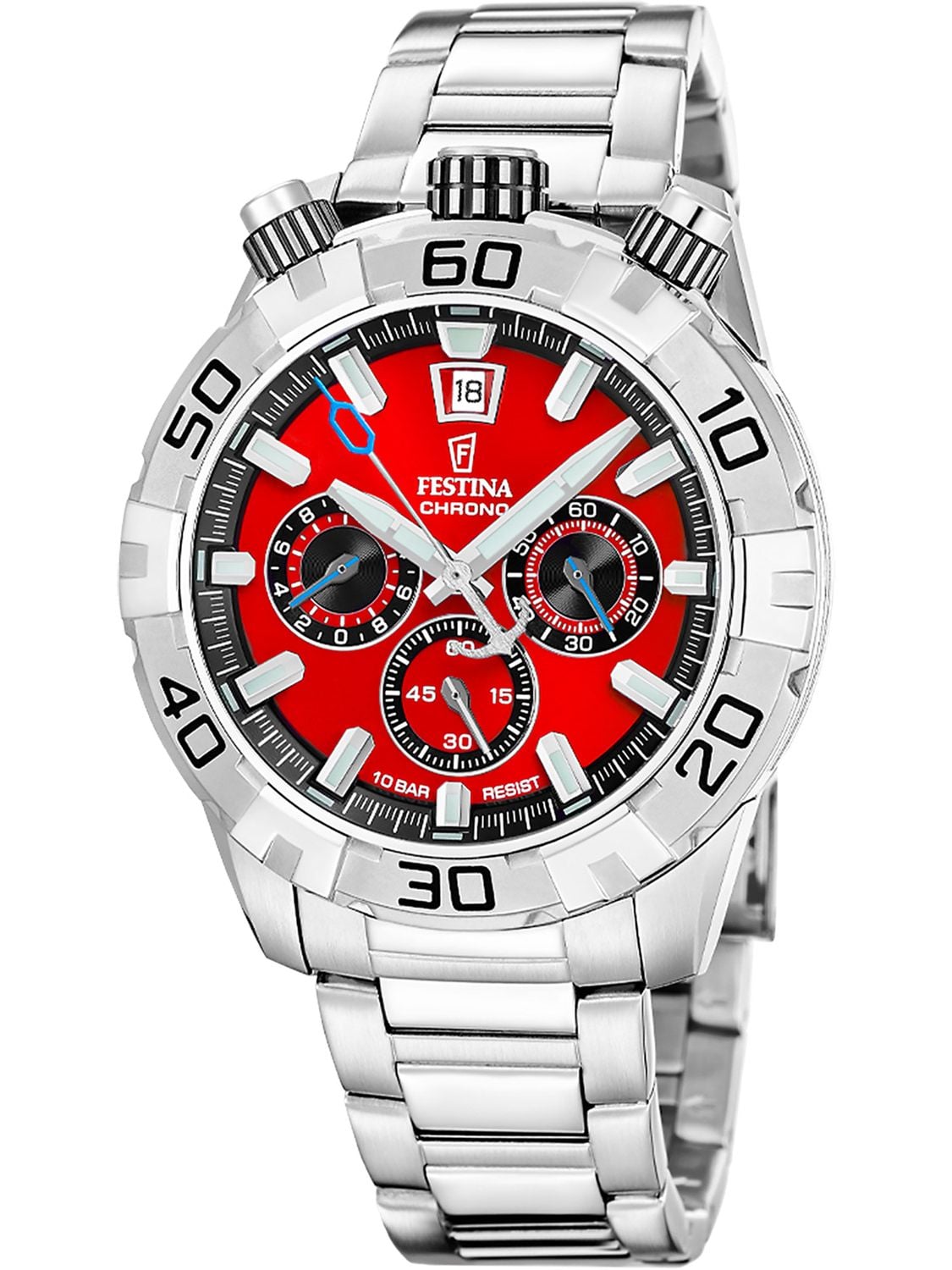 • Festina 20743/5 Herrenuhr Bullhead Rot mit Stahlband 1