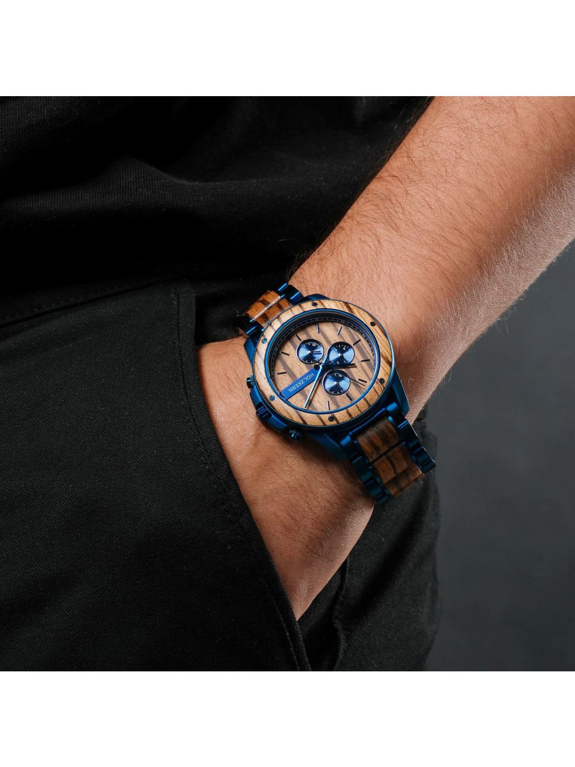 • Holzkern Herren-Chronograph Quarz Gareth Zebrano 1
