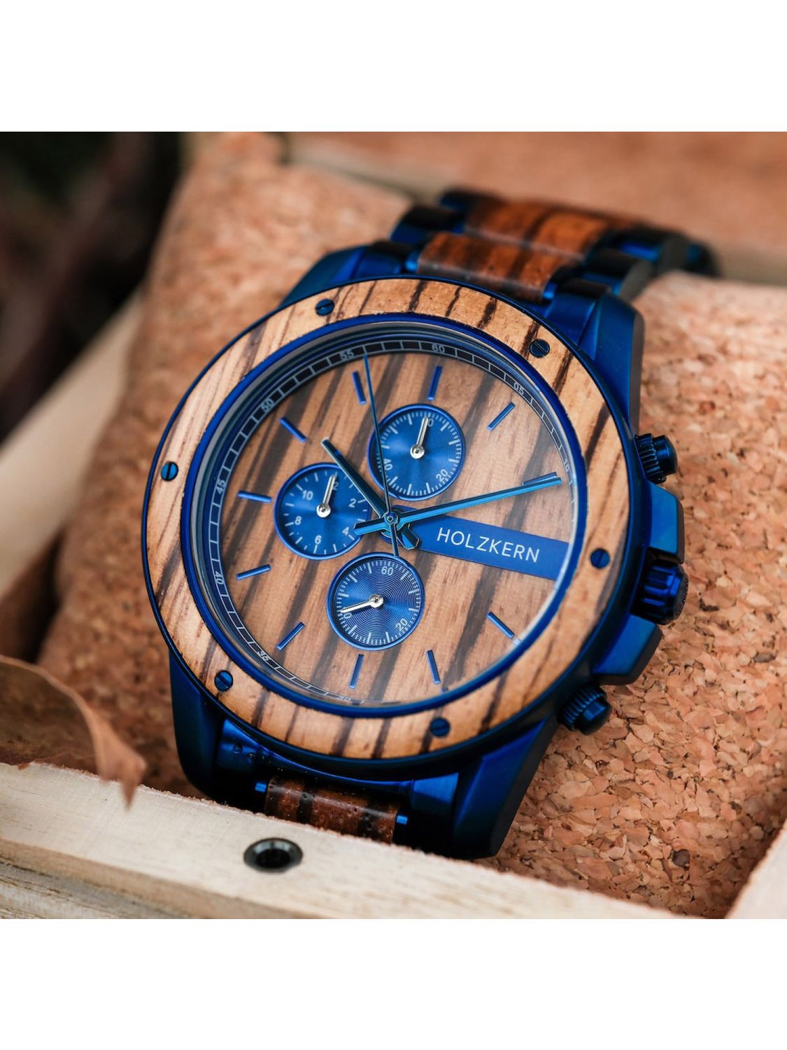 • Holzkern Herren-Chronograph Quarz Gareth Zebrano Verpackung
