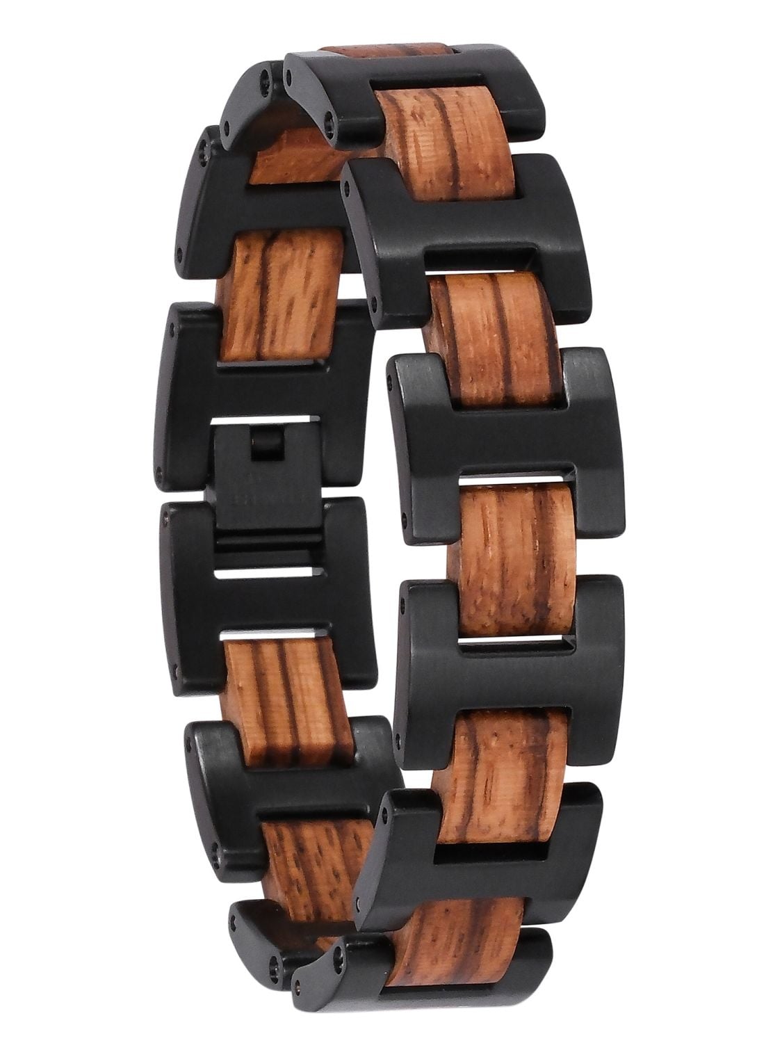Holzkern Herrenarmband Edelstahl mit Holz Acoustic Zebrano/Schwarz 9120078334218