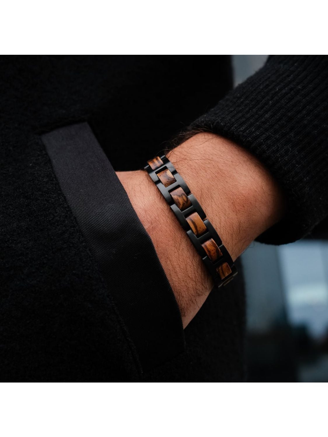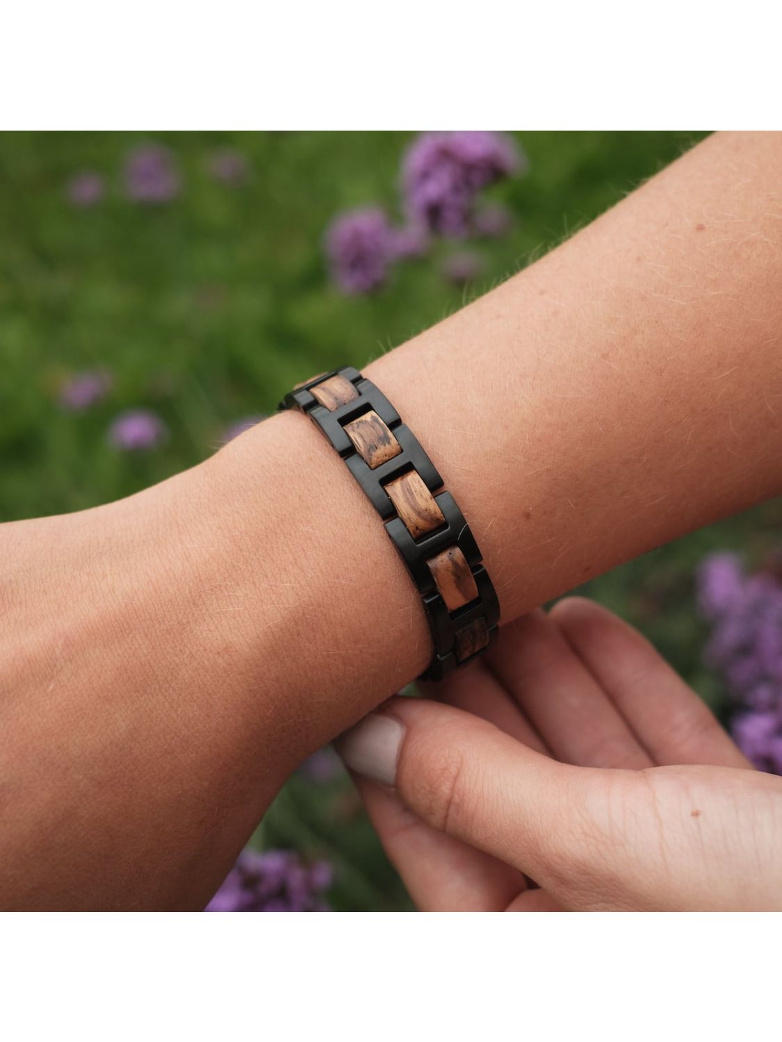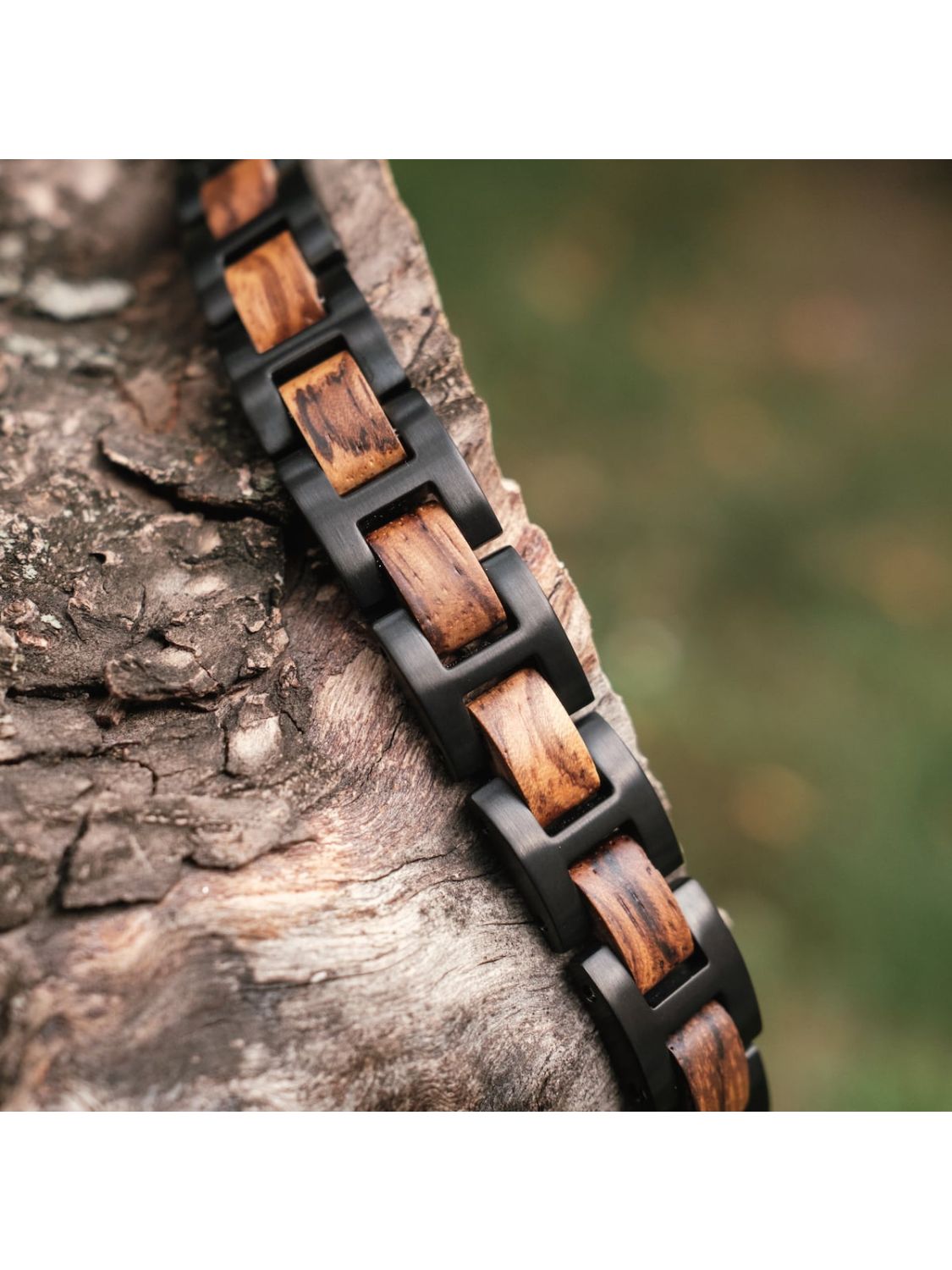 • Holzkern Herrenarmband Edelstahl mit Holz Acoustic Zebrano/Schwarz 3