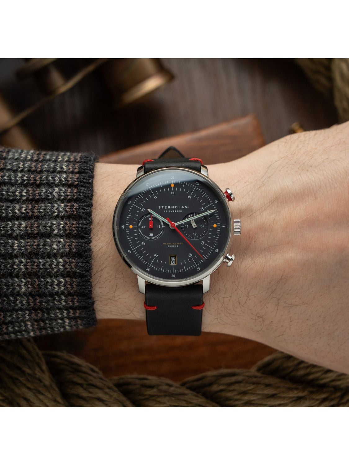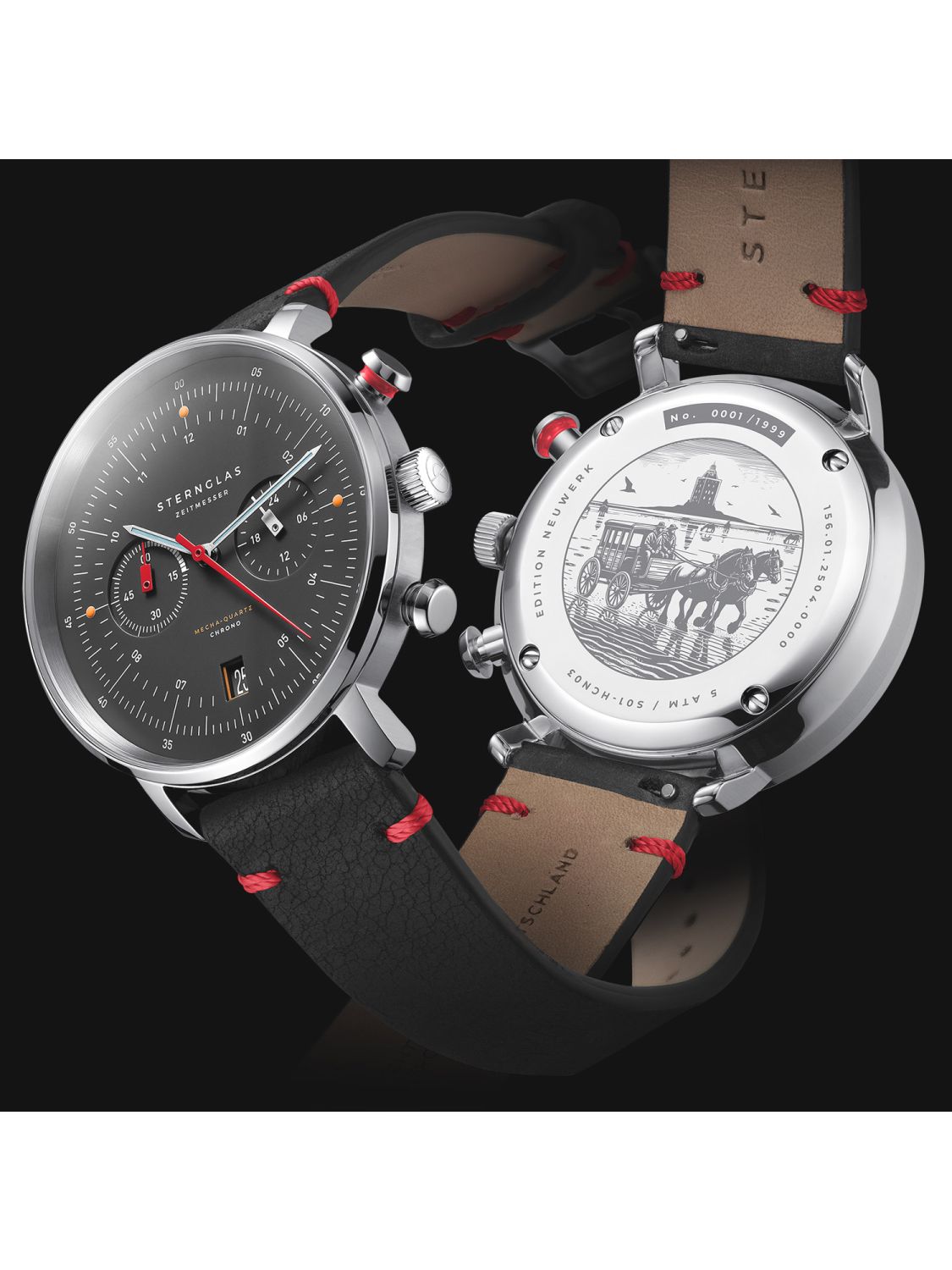 Sternglas S01-HCN03-VI29 Herrenuhr Mecha-Quartz Hamburg Chrono Neuwerk Schwarz