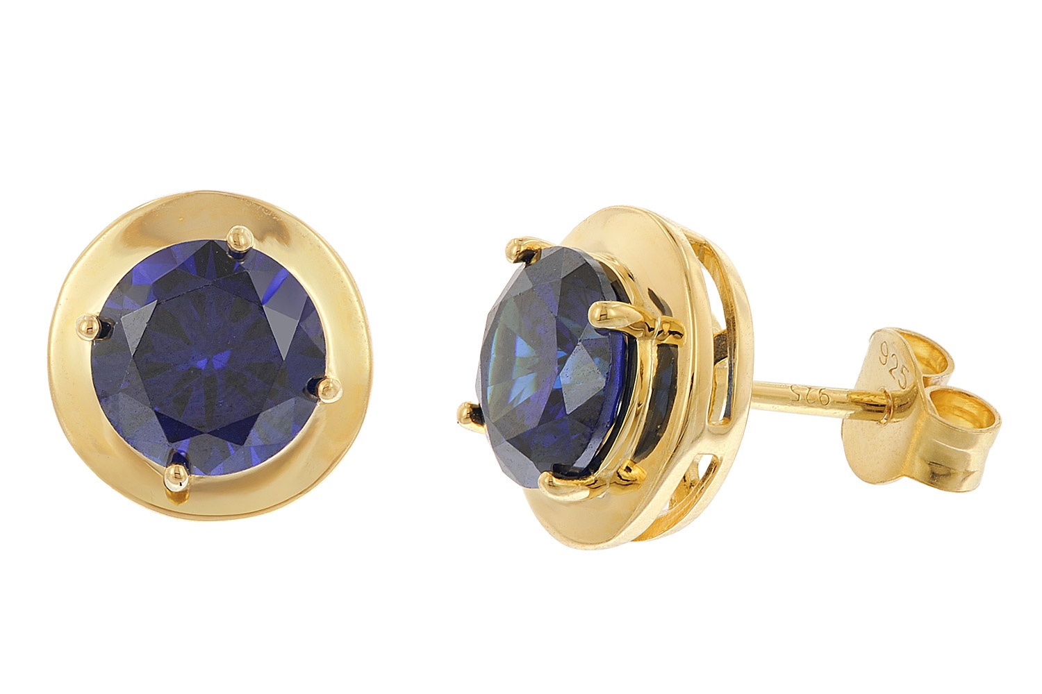 trendor Damen-Ohrstecker 925 Silber Vergoldet Zirkonia Tanzanitblau