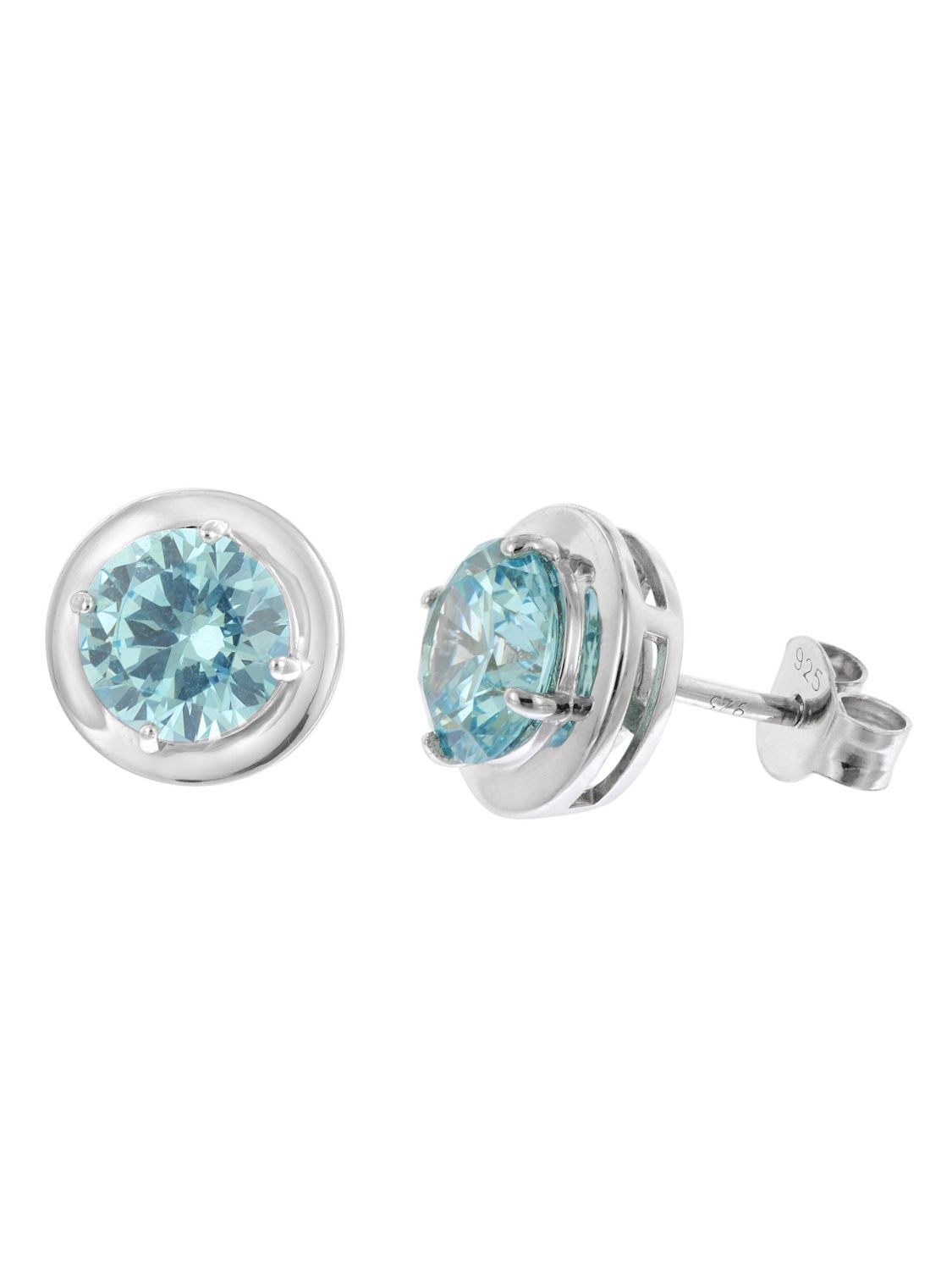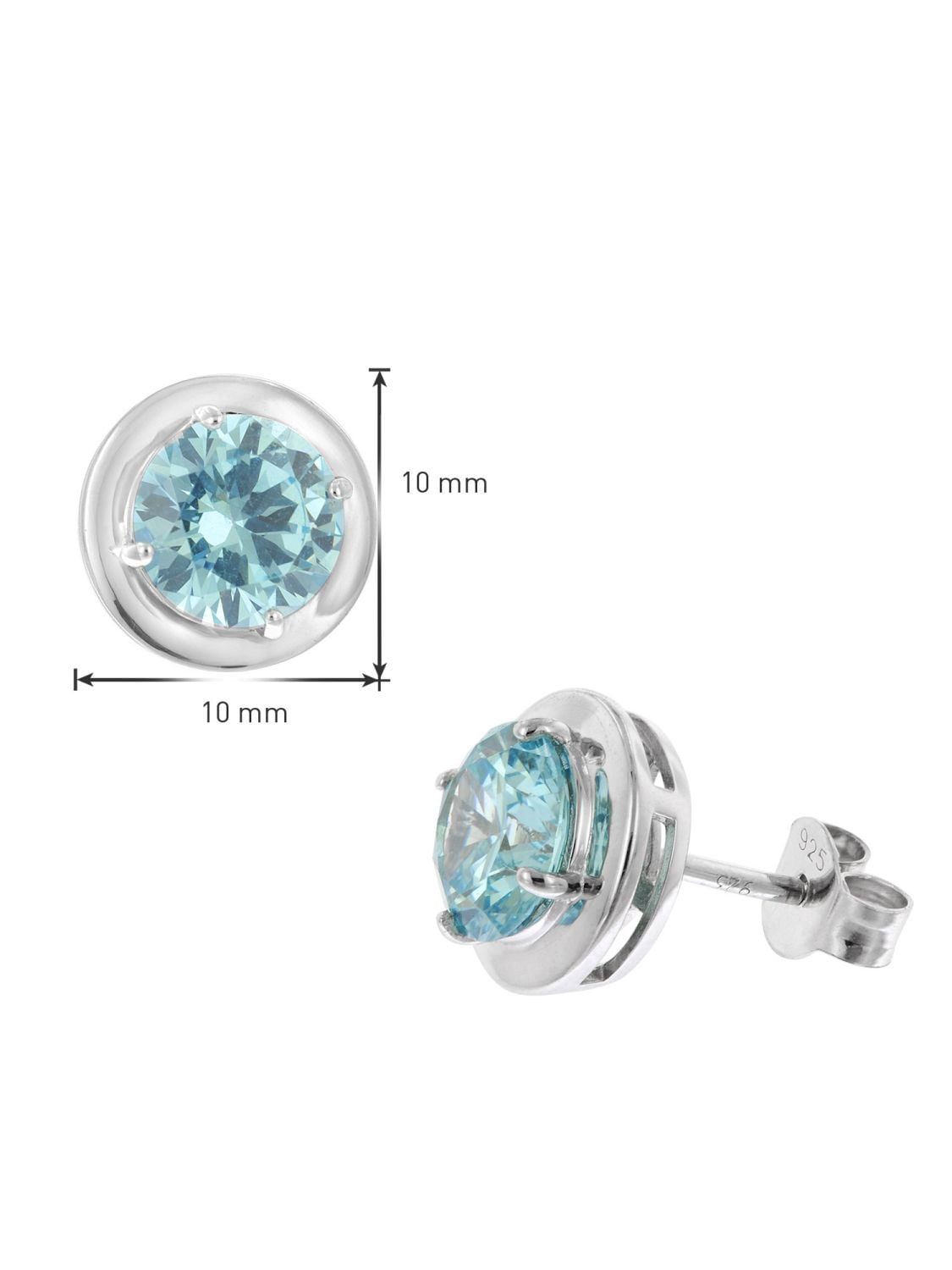 • runde hellblaue Zirkonia in einer 4-Krappenfassung