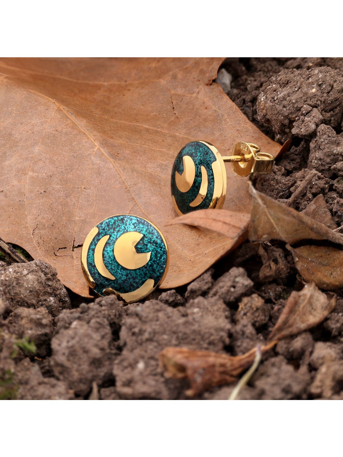 • trendor 21545 Ohrringe Himmelsscheibe von Nebra 925 Silber grün/gold ⌀ 12 mm 4